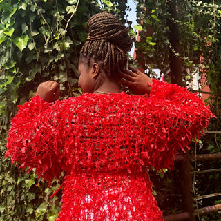 Título: Casaco Coral Técnica:Tricot Material: Fita acrílica na cor coral Dimensão aproximada:90x50cm