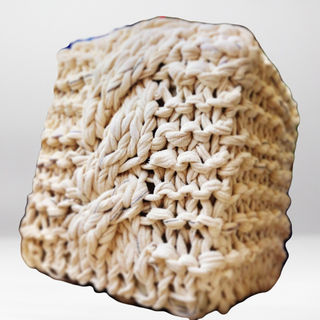 Título: Trança Técnica:Tricot Material: Retalhos de algodão reciclados na cor off-white Dimensão aproximada:42x37X37cm